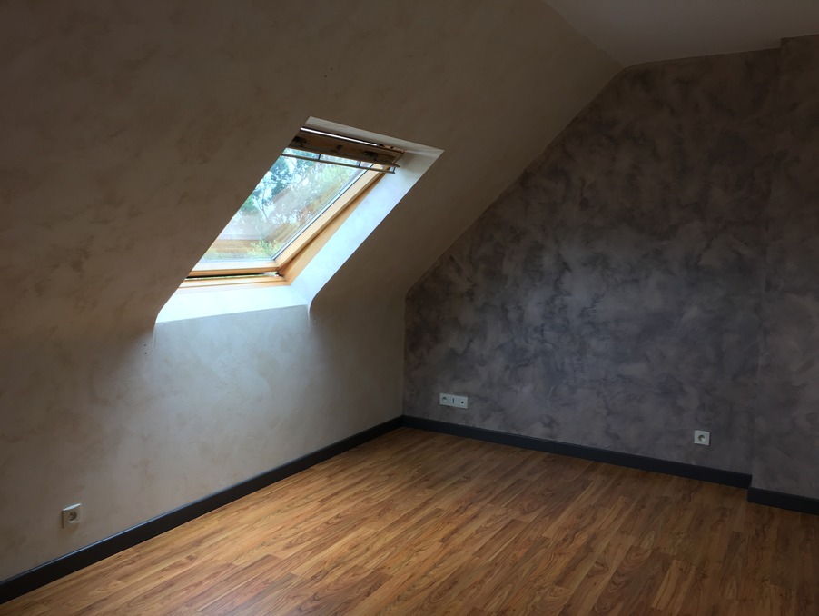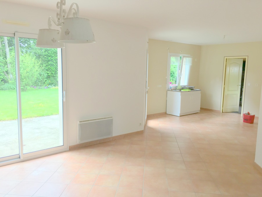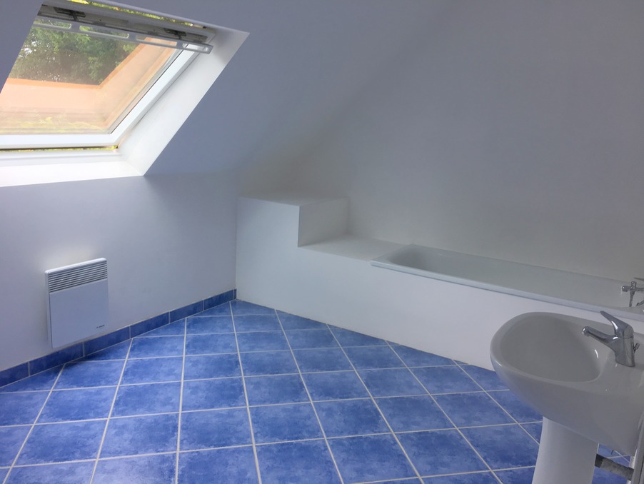 A l'étage, une grande mezzanine, une salle de bains avec baignoire, un wc, deux chambres . Garage attenant - Jardin de 650m²- chauffage électrique. Tout à l'égout. Disponible Janvier 2026