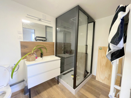 Elle est composée au rez de chaussée d'une entrée, un salon séjour avec un poêle à granulés, une cuisine aménagée- équipée, une salle d'eau avec un wc, une chambre.