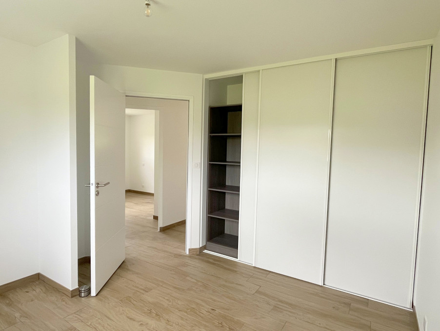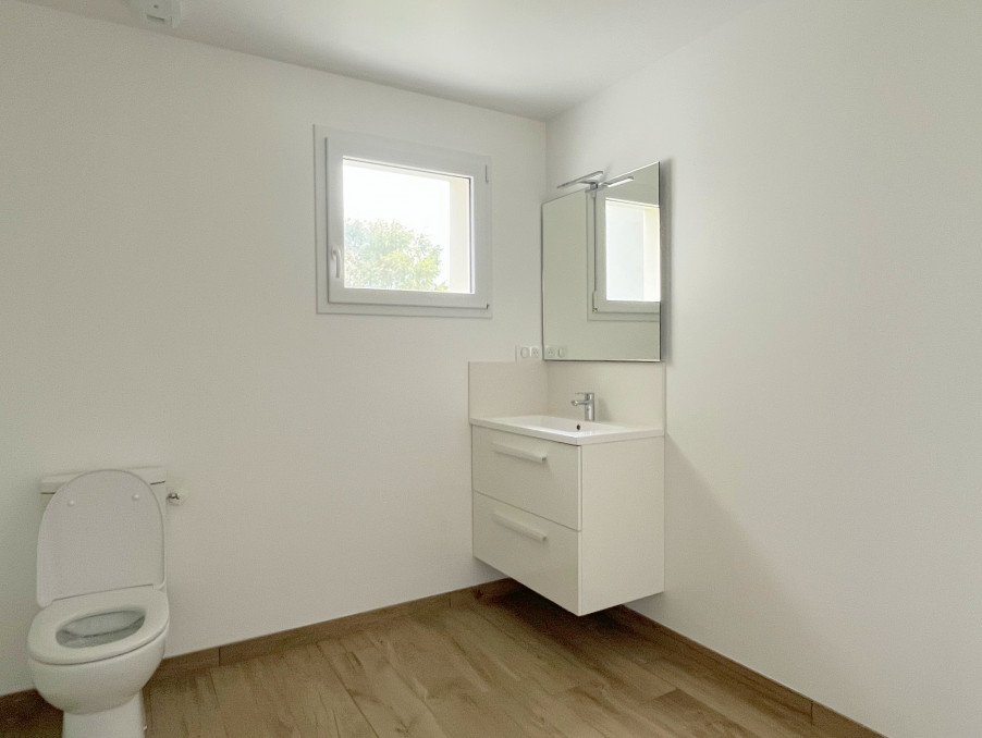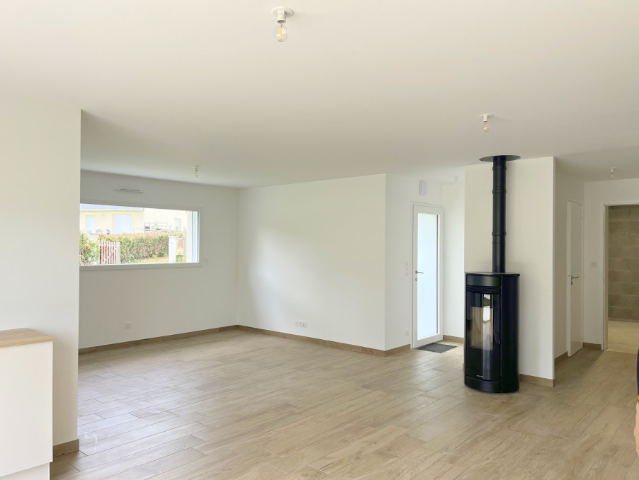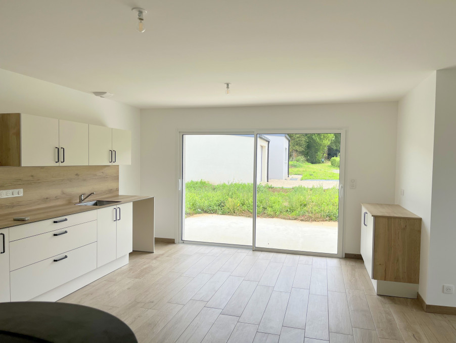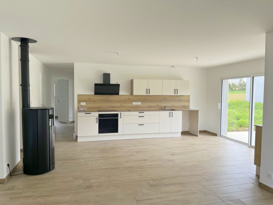Maison d'habitation neuve plain-pied composée au rez de chaussée d'une entrée, un wc, un salon/séjour avec poêle à granules , une cuisine ouverte aménagée/équipée neuve, une salle d'eau avec un wc, trois chambres avec placards.Un Garage attenant. Jardin. Dans une impasse au calme très proche bourg.