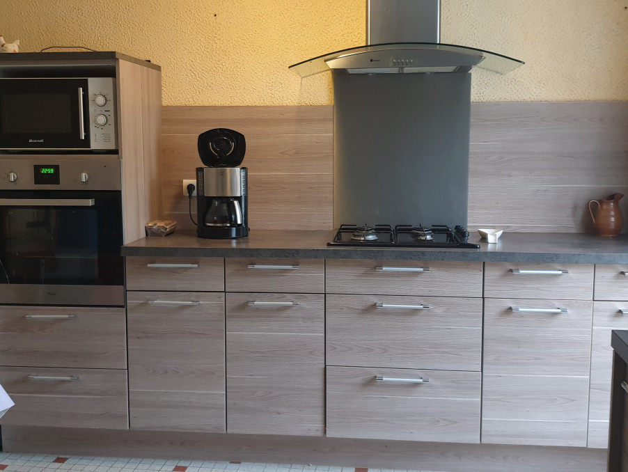 En appentis, une cuisine aménagée et équipée au goût du jour offre une belle convivialité (travaux à prévoir plafond et peintures). Un WC et une salle d’eau complètent ce niveau.