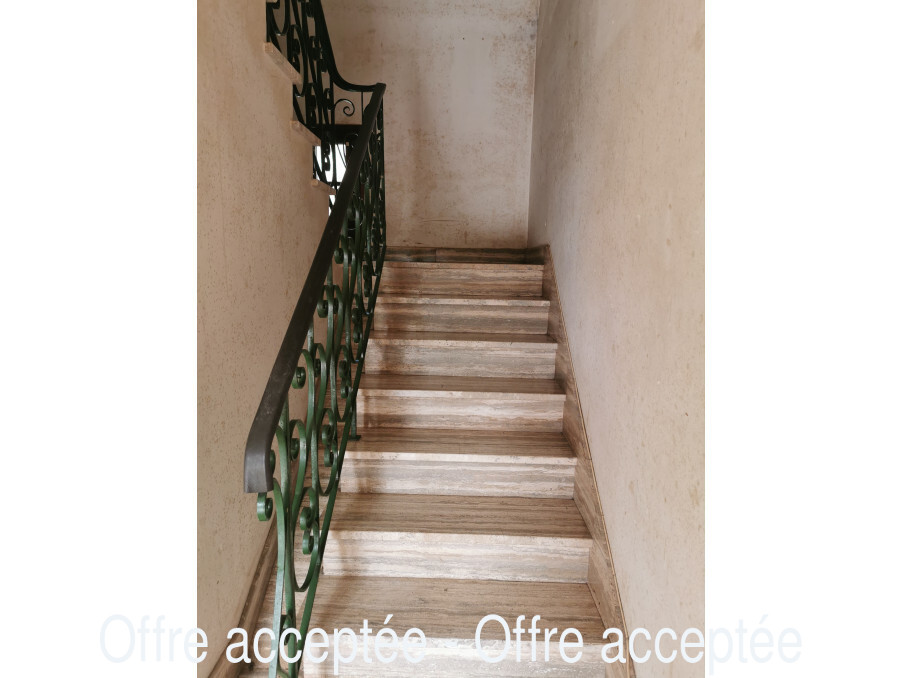 Escalier en travertin avec garde corps en fer forgé, à l'étage : un palier dessert quatre chambres, une salle d'eau avec wc